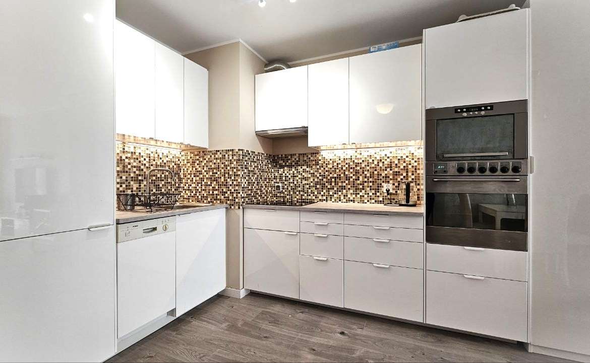 Kitchen: Kitchenette ideal for people who value modern solutions with high-quality household appliances, fridge, dishwasher, induction cooker with oven and hood, washing machine in the bathroom. PVC windows 3 glass.