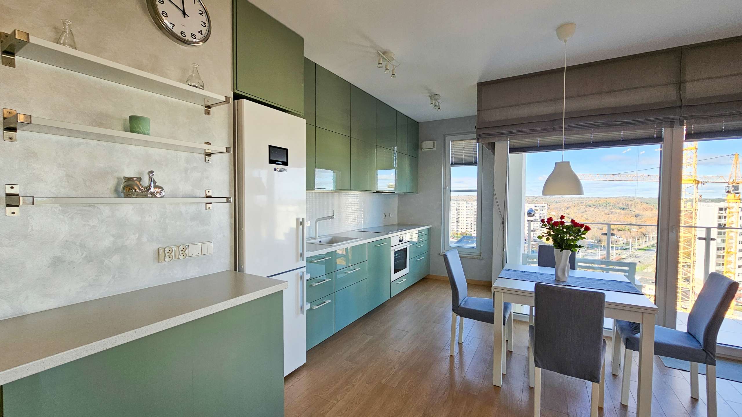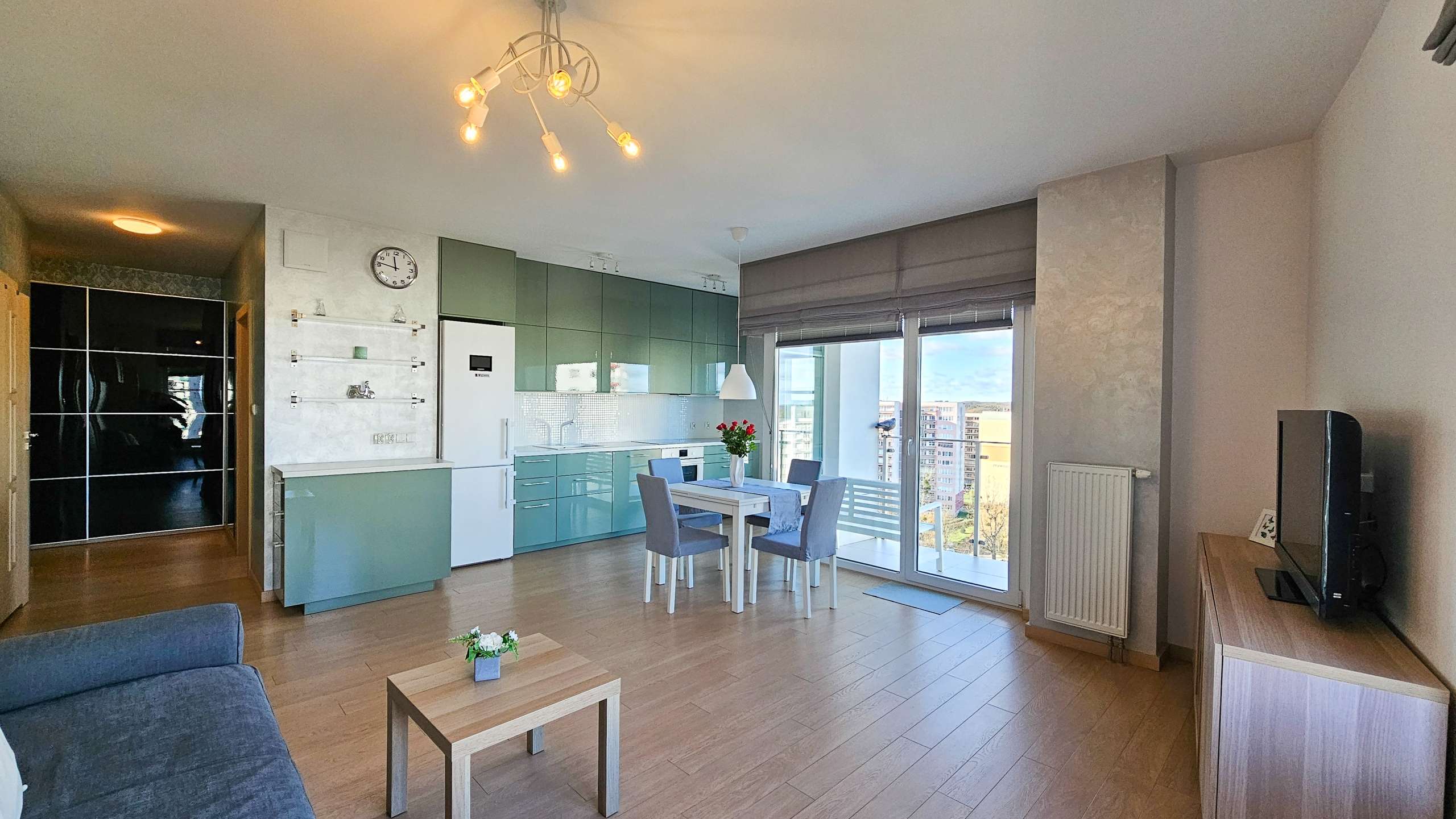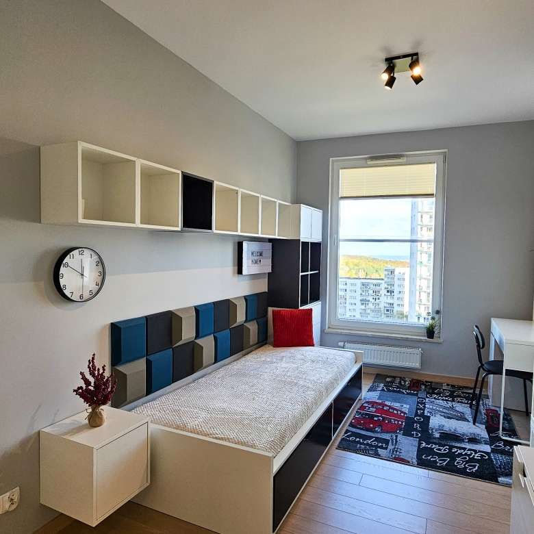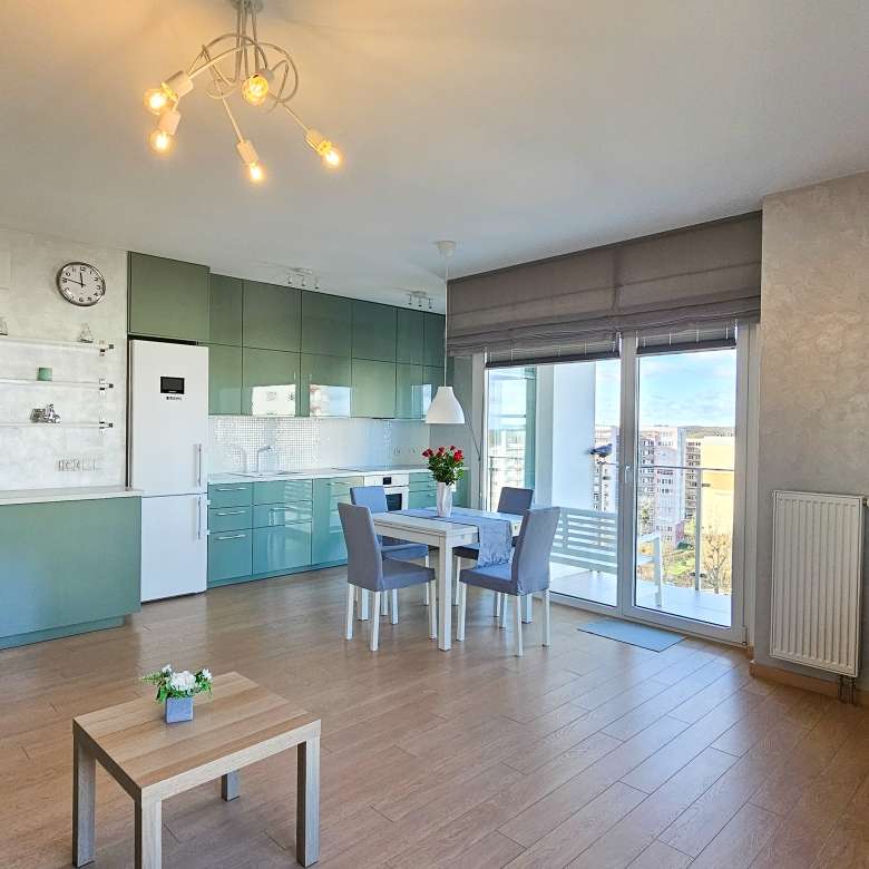 Из этой квартиры на 11 этаже открывается потрясающий вид на городской пейзаж, море и полуостров Хель – вид настолько красивый, что хочется просыпаться к жизни здесь каждый день!